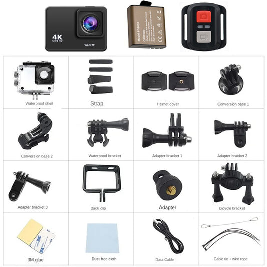 СПОРТНА КАМЕРА 4K ВОДОУСТОЙЧИВА 30 МЕТРА WIFI 170 ГРАДУСА /SPK066/