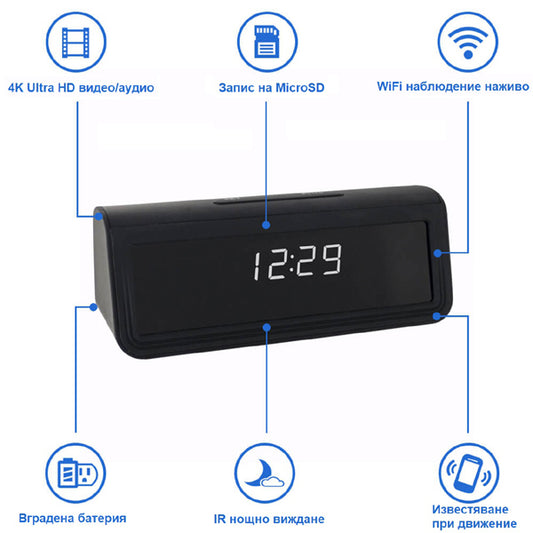 WIFI/IP часовник с камера 4K, нощно виждане и запис на Micro SD /BK029/
