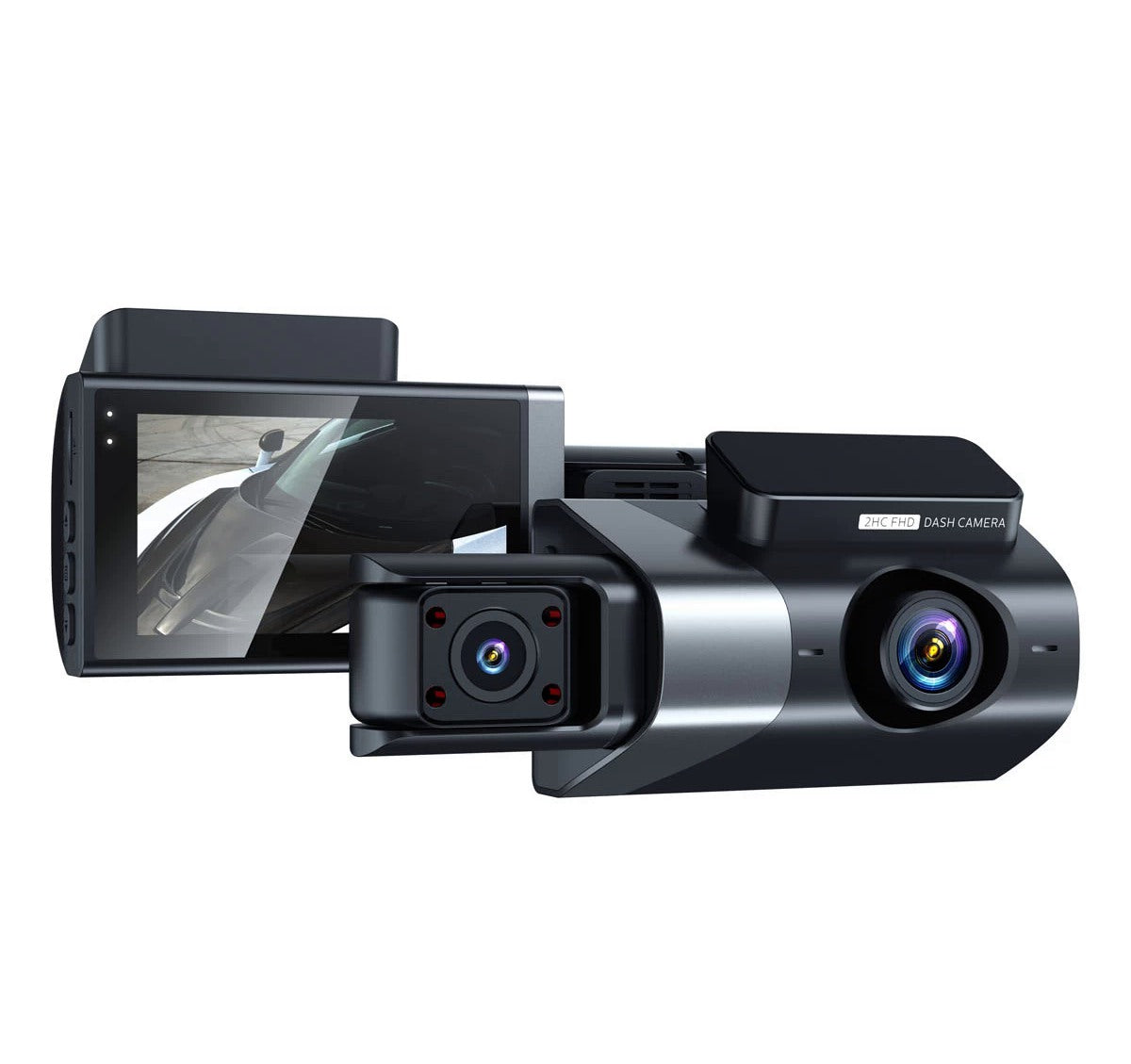 Видеорегистратор с три камери с ъгъл на видимост 170 градуса на предната камера и 120 градуса на задната и допълнителната камера, висока разделителна способност Full HD 1296p , G – сензор  и други.