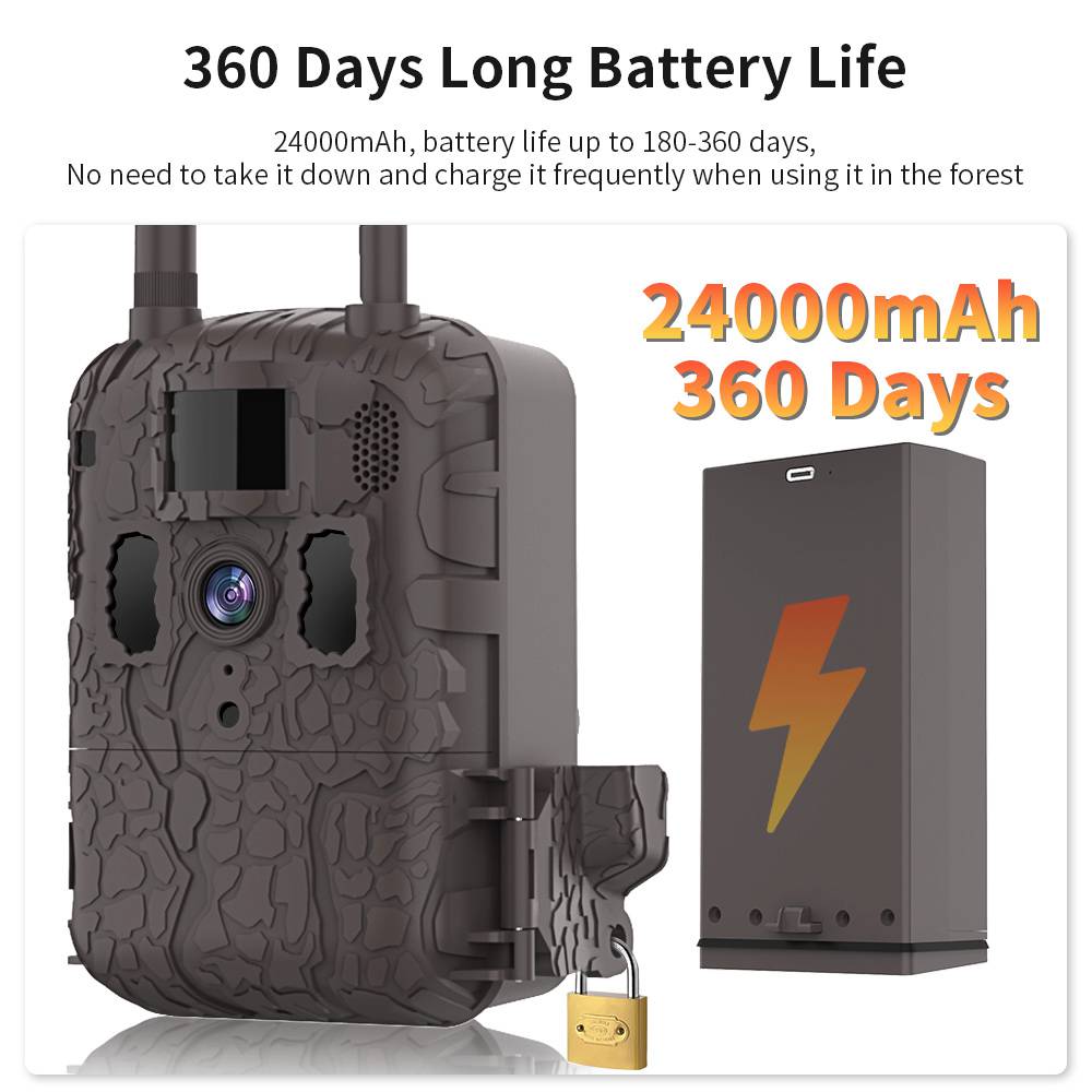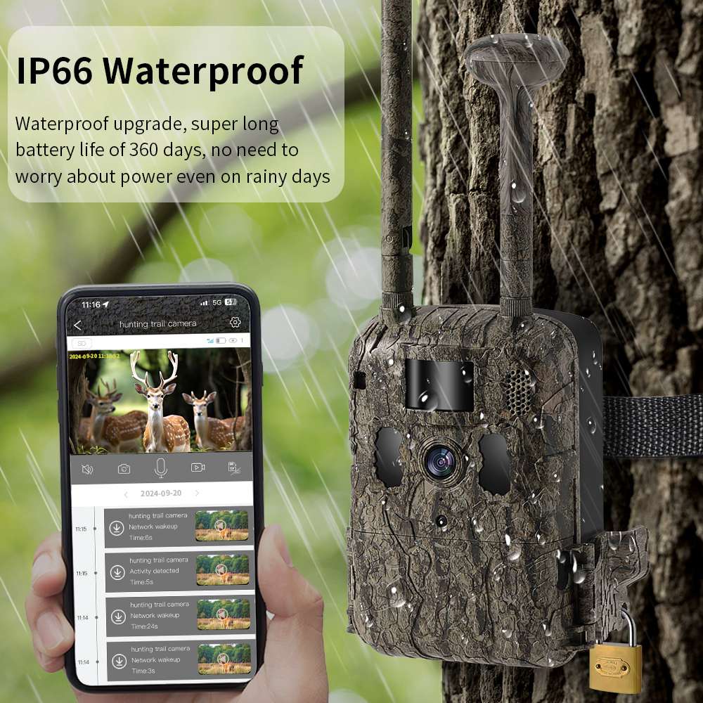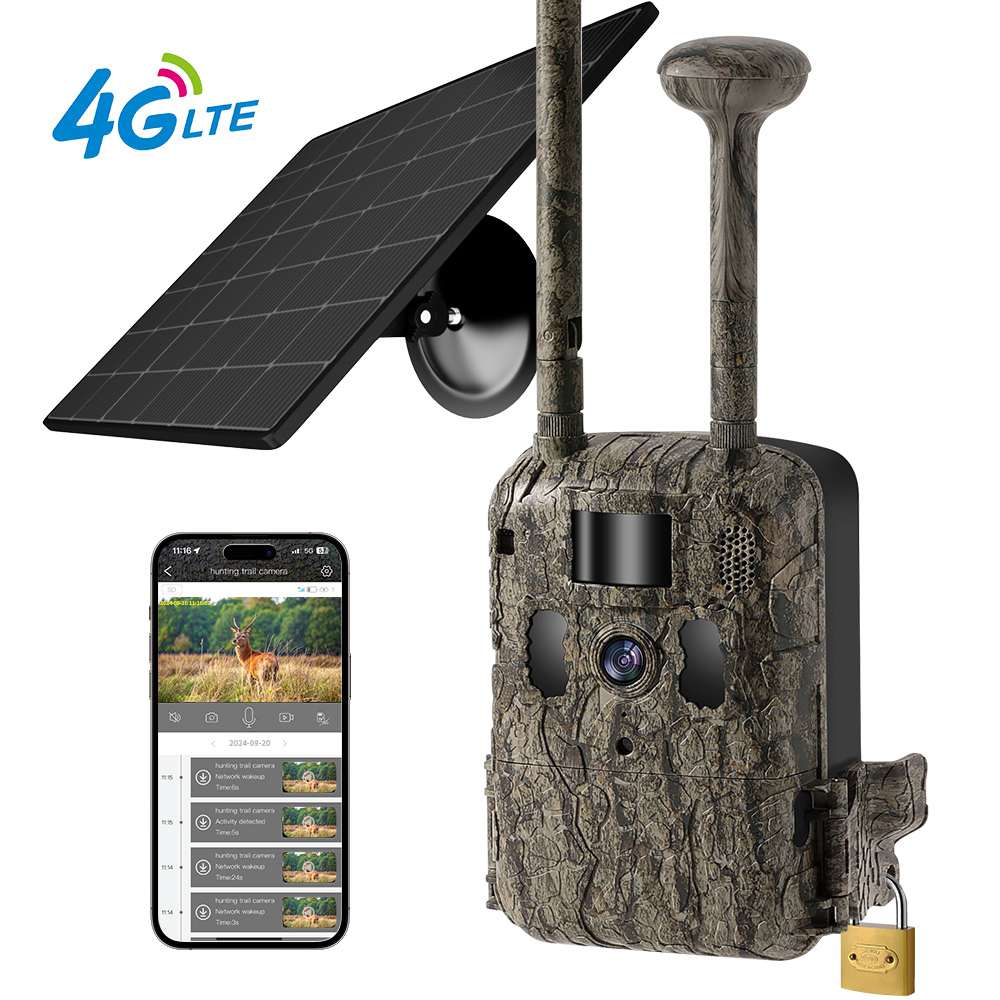 Вграденият 4G lte GSM модул позволява бързото заснимане на снимки веднага щом камерата засече човек или животно. Хубавото при този модел камера, е че тя може да запаметява всички файлове на облачно пространство и също така има голям соларен панел за по-дълъг живот на батериите. Безплатно приложение за Iphone и Андроид.